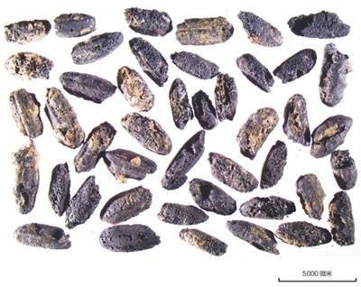 浙江仙居下汤遗址出土的上山文化时期炭化稻米。 本文图片均为孙瀚龙提供