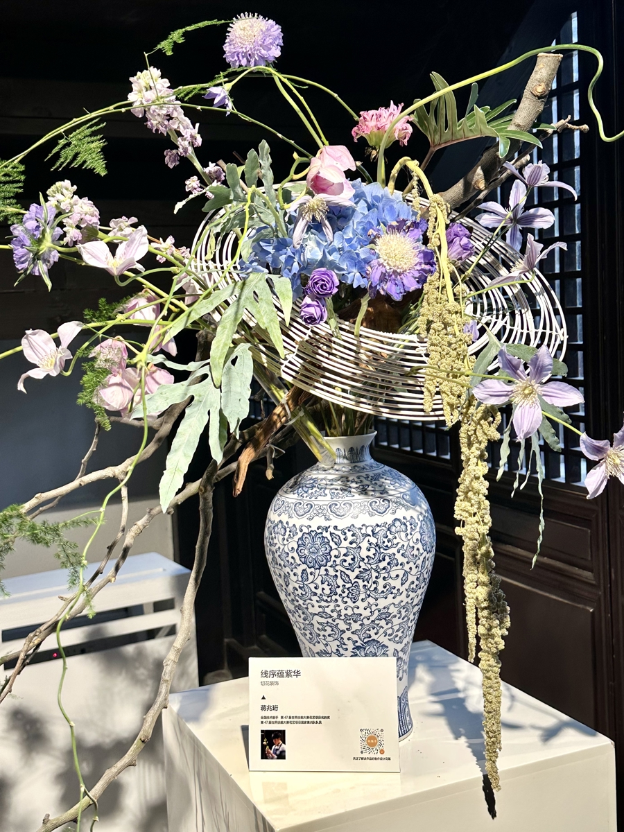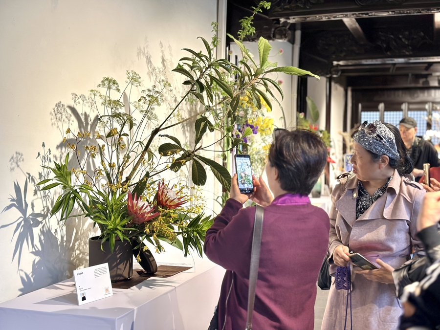 “此次展示既有中国传统插花、东方现代花艺,也有世界技能大赛花艺项目里的切花装饰,还专门设置了海派插花特色花器镜框的‘框景插花’、视线较低的‘儿童友好拍照打卡点’等,就是想让大家看到,插花不只是展览和比赛,更可以融入日常、走进生活。”上海黄浦区插花花艺职业技术培训学校校长张颖说。