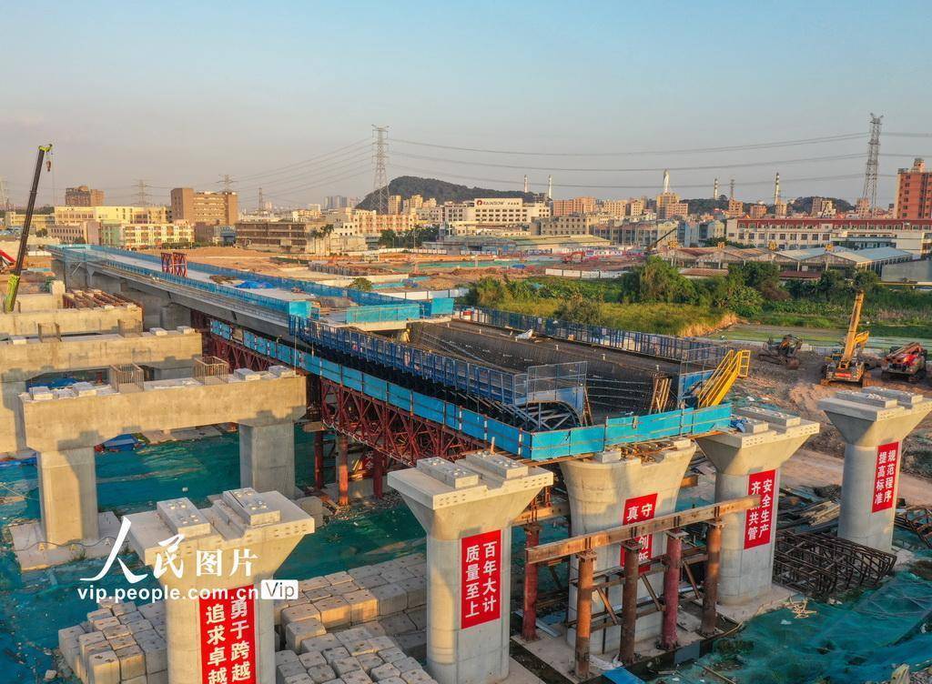 深江铁路是国家“八纵八横”高铁网沿海通道的重要组成部分,建成通车后,将把深圳、东莞、广州、中山、江门这五座大湾区城市更紧密连接在一起,实现深圳前海自贸区与广州南沙自贸区半小时高铁互联互通,助力打造“轨道上的大湾区”。闵辉摄(人民图片网)
